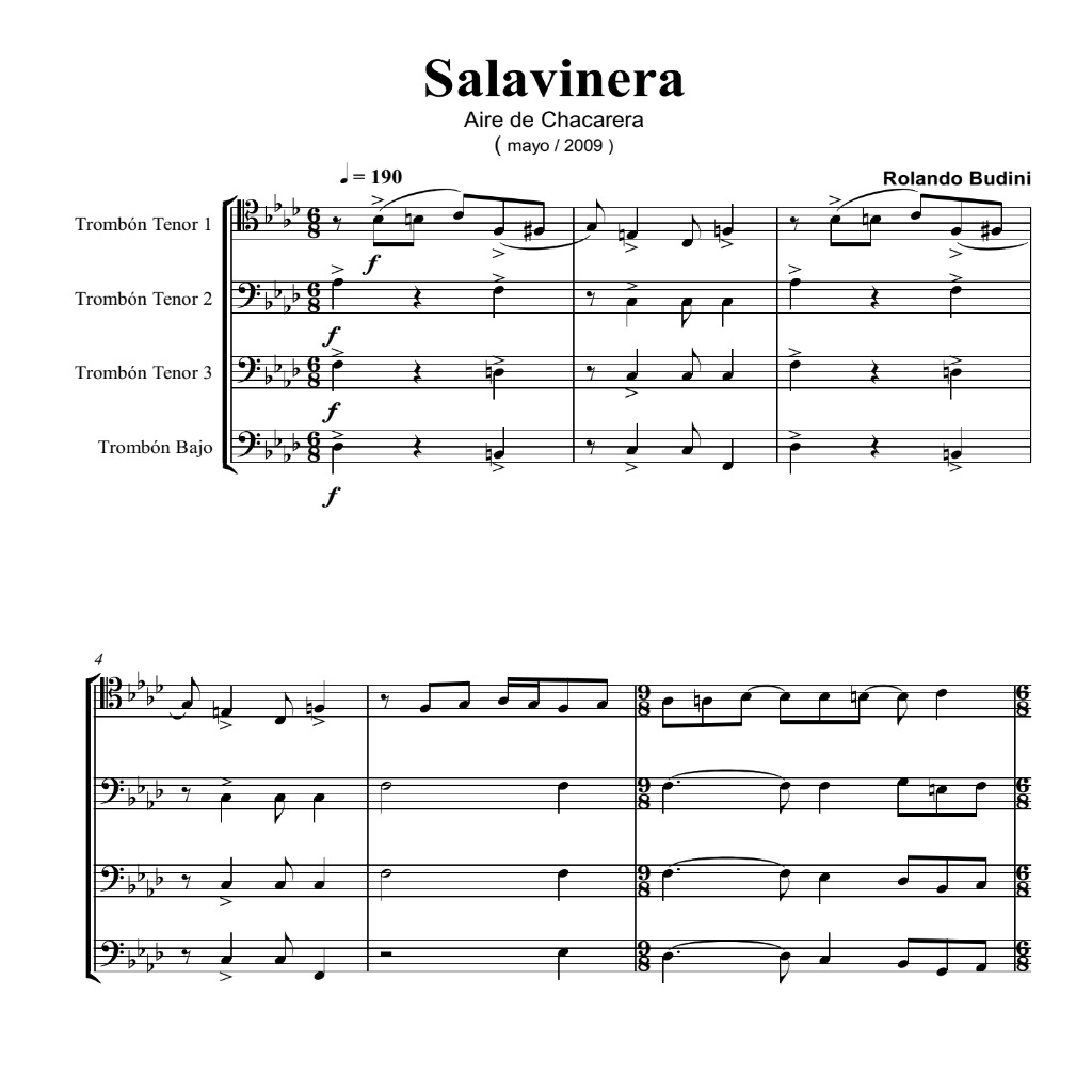 Versión para cuarteto de trombones del original para cuarteto de voces femeninas.
